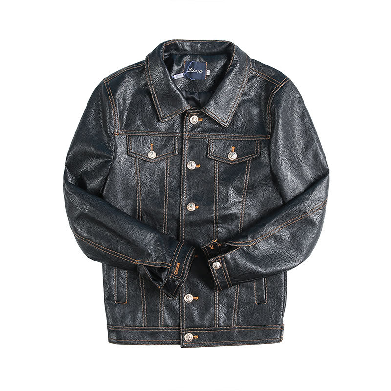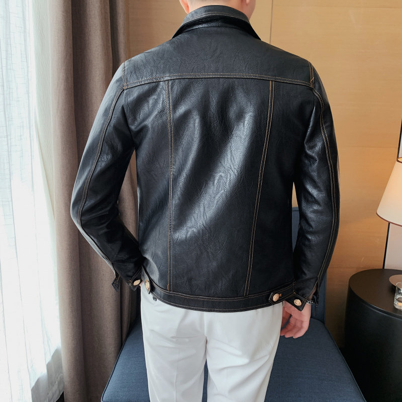 潮 斜拉链复古骑行夹克仿皮机车皮衣外套短款 1966300 春秋新款 男装