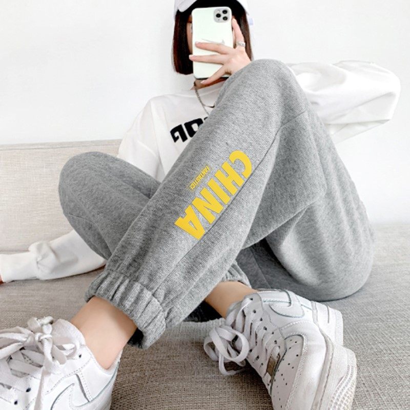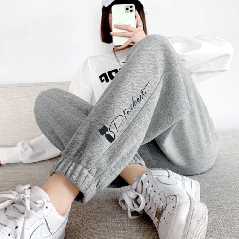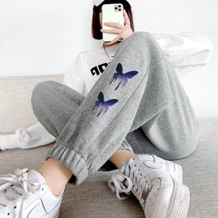 小个子休闲卫裤 显瘦哈伦裤 女秋冬加厚宽松大码 灰色加绒束脚运动裤