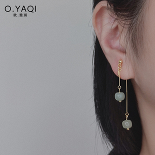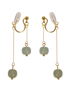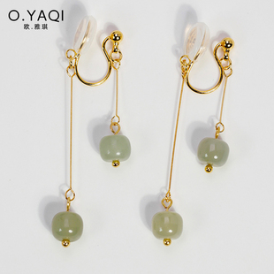 简约和田玉流苏蚊香盘耳夹无耳洞复古高级感手作耳钉耳款 女耳饰