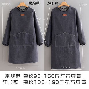 加长上班干活加肥罩衣工作服加厚牛仔耐磨长袖 围裙男定制印字logo