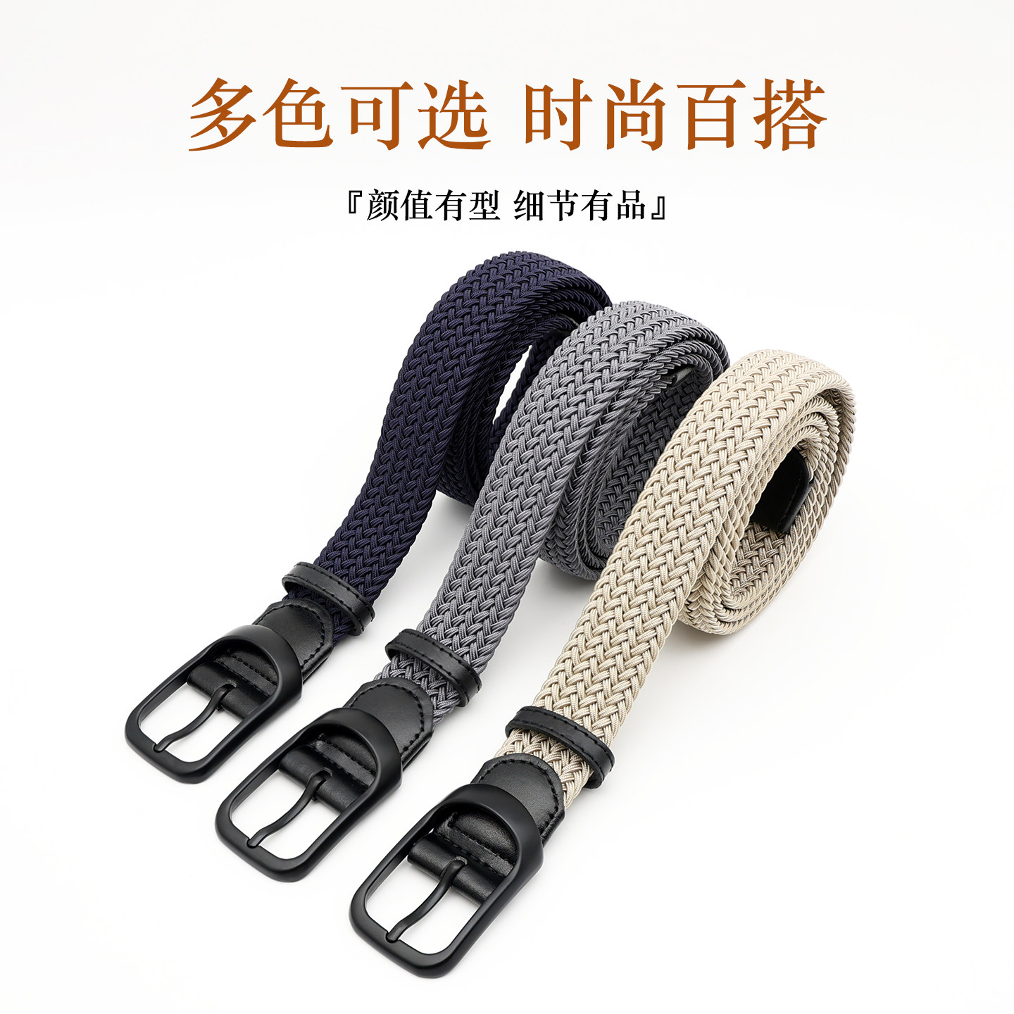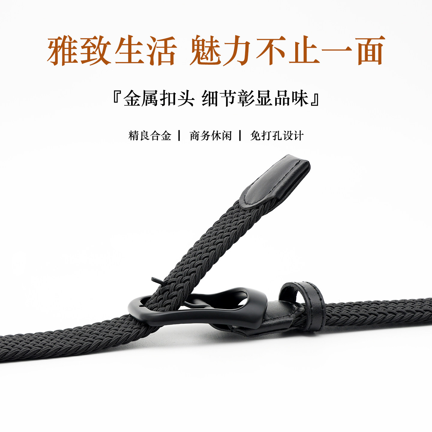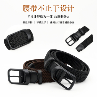 男士 带 编织腰带免打孔休闲针扣皮带弹力松紧作训商务百搭高尔夫裤