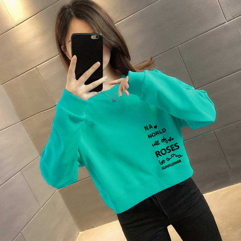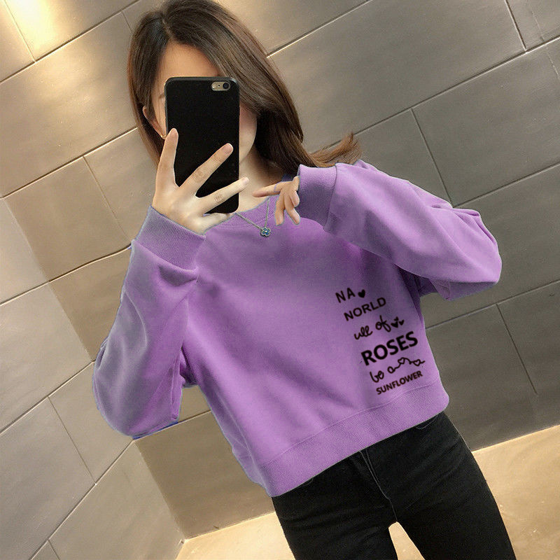 春秋纯棉短款 洋气减龄宽松显瘦休闲百搭小个子高腰上衣 卫衣女时尚