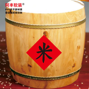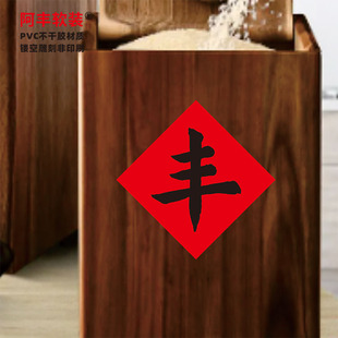 PVC不干胶红底黑字丰字贴纸 饰墙贴金色自粘 新米粮店铺米桶米缸装