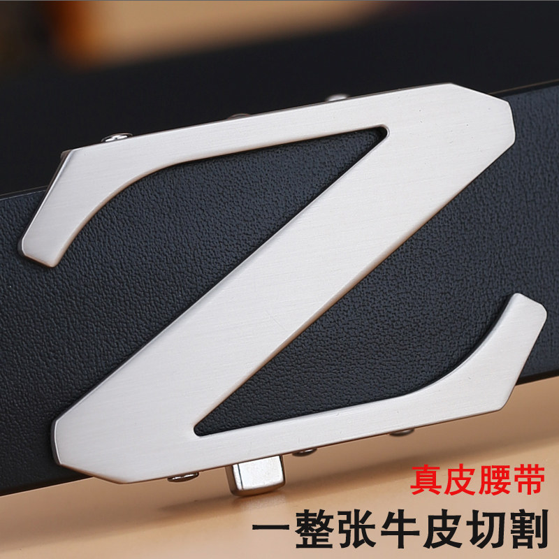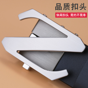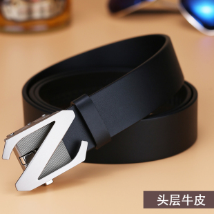 VGXOUE头层牛皮皮带男真皮休闲商务自动扣腰带男士 带 黑色青中年裤