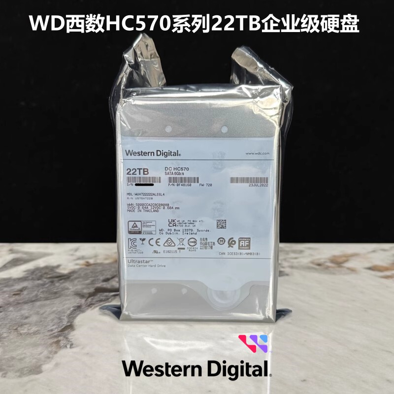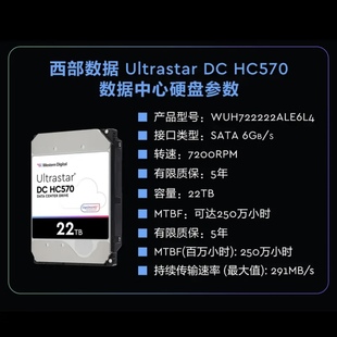 SATA企业级机械硬盘WUH722222ALE6L4 国行WD西数 HC570氦气22T