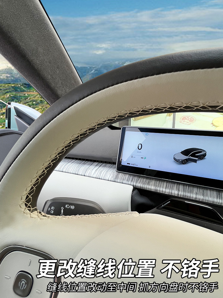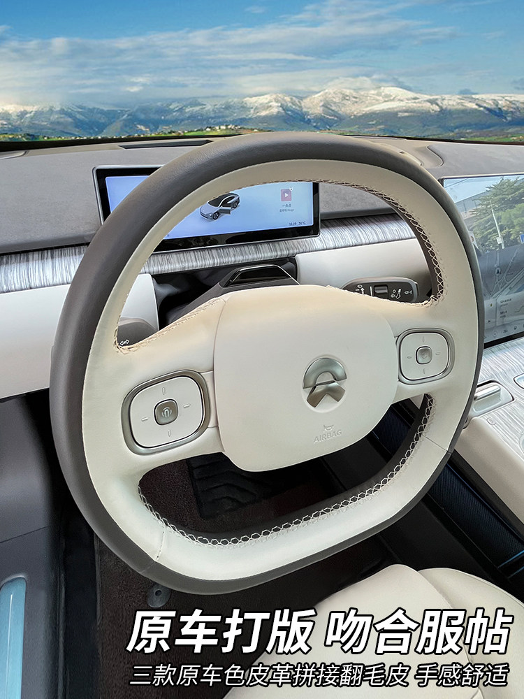 适用于蔚来ET7手缝方向盘套改装 把套内饰保护 专用原车色拼皮四季
