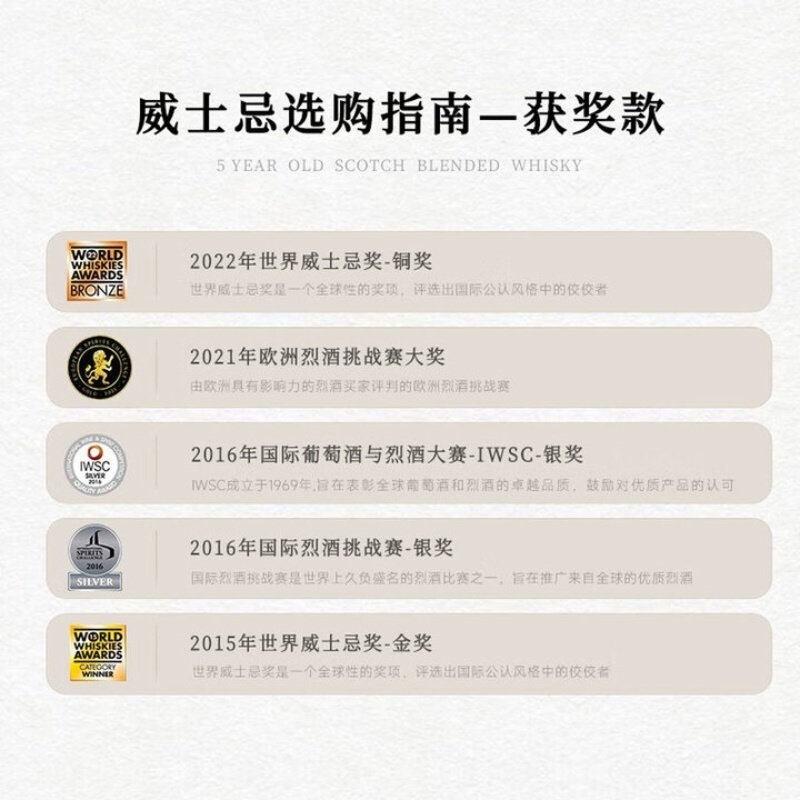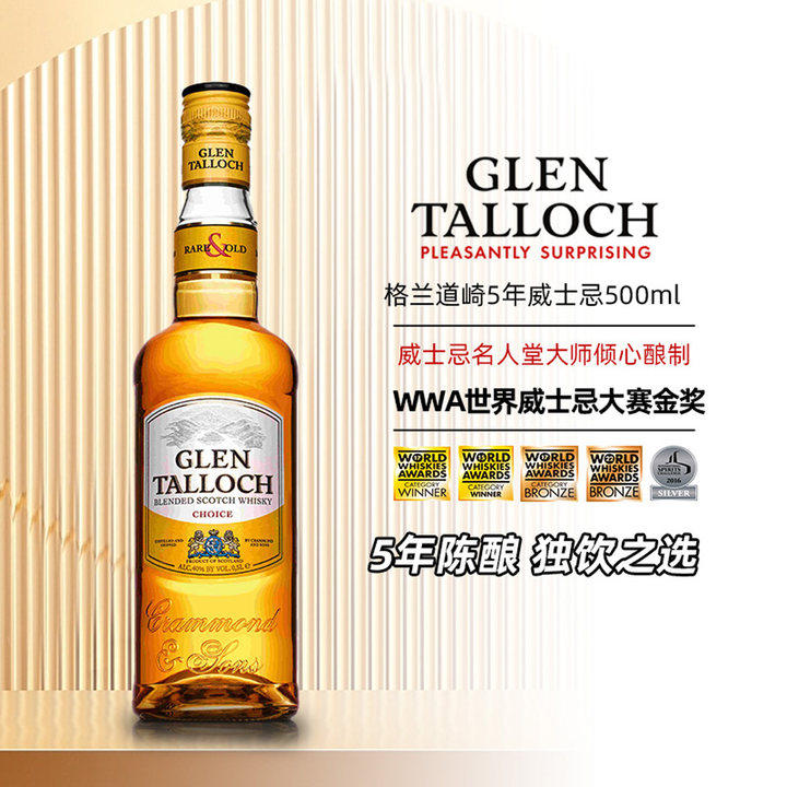 格兰道崎5年苏格兰调配威士忌500ml英国进口 多次获奖 自营