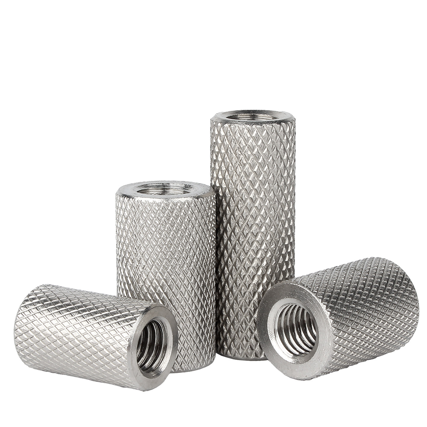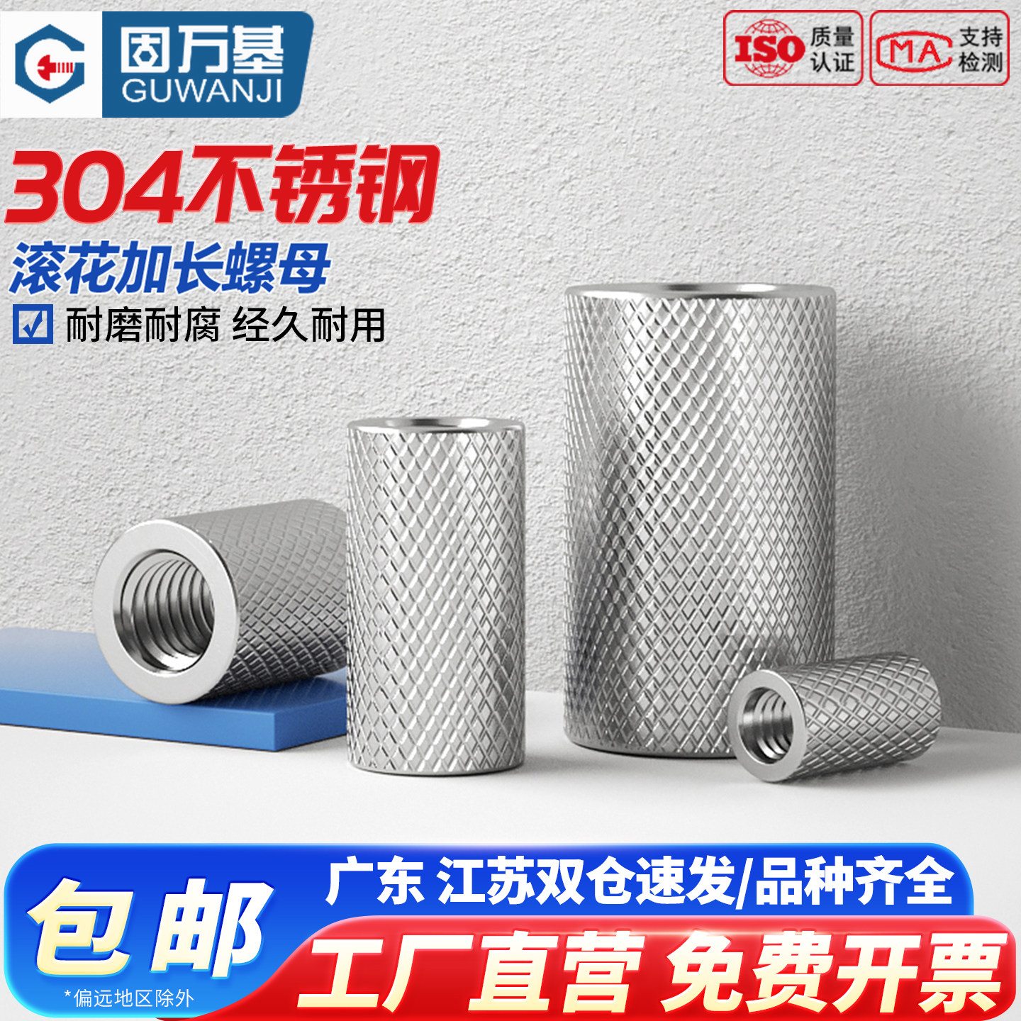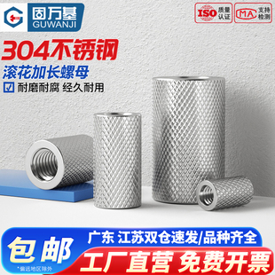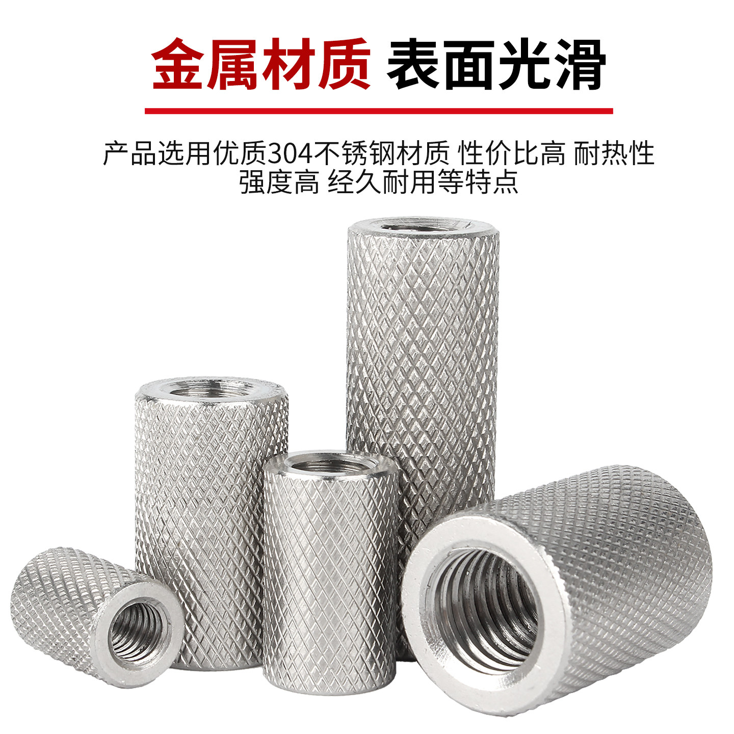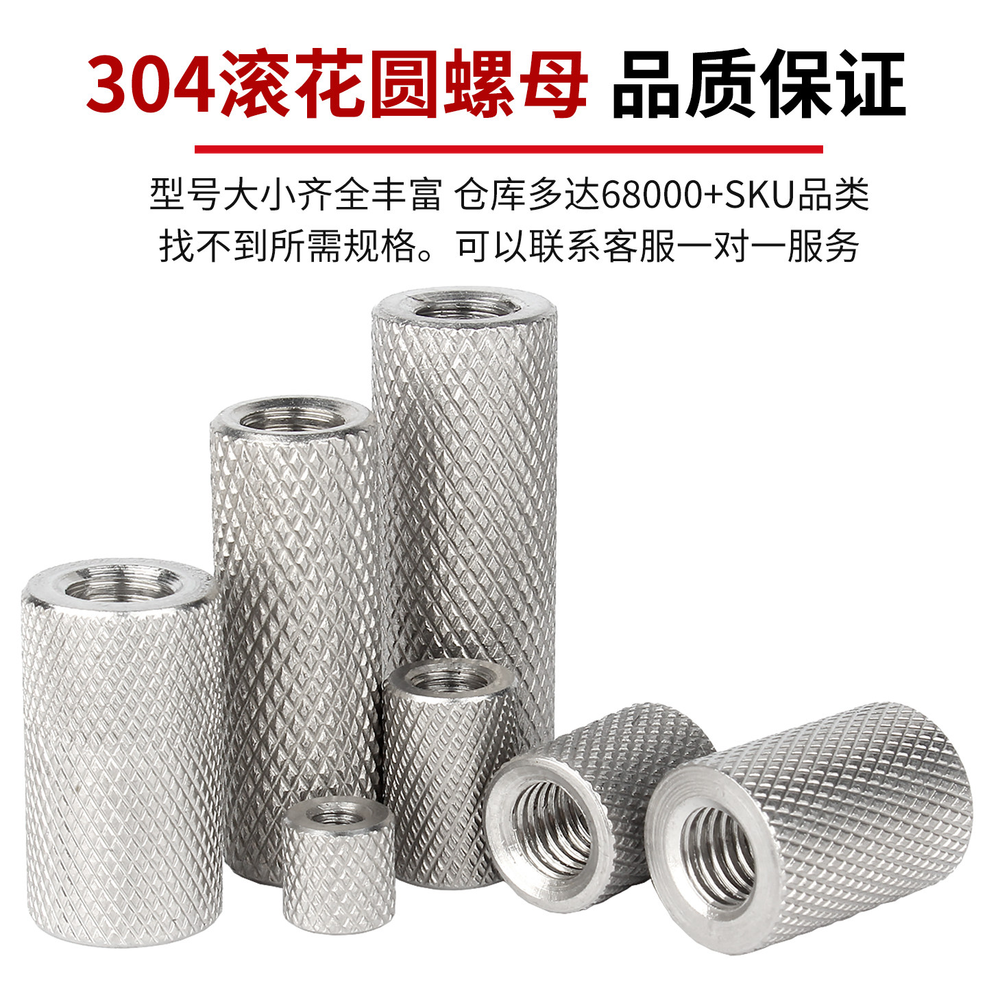 304不锈钢加长平头滚花螺母螺帽圆柱手拧网纹螺丝帽M3M4M5M6 M16