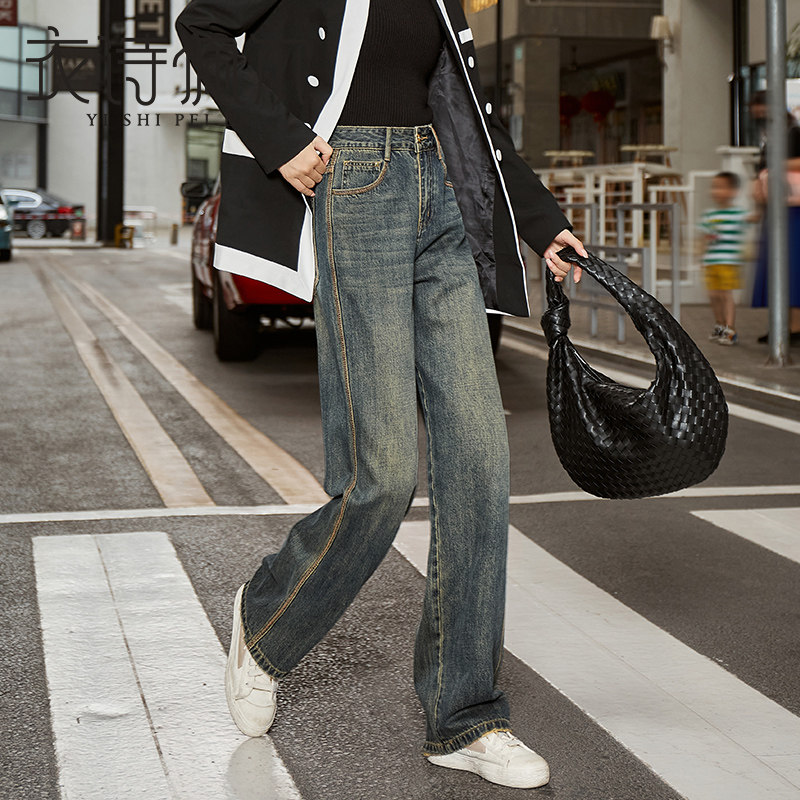 水洗牛仔裤 子直筒休闲裤 男秋冬款 宽松阔腿裤 子 美式 @港仔文艺男