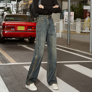 宽松显瘦深蓝色阔腿裤 新款 子 女2025年冬季 逸阳加绒加厚直筒牛仔裤