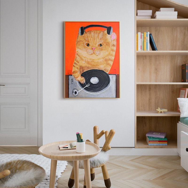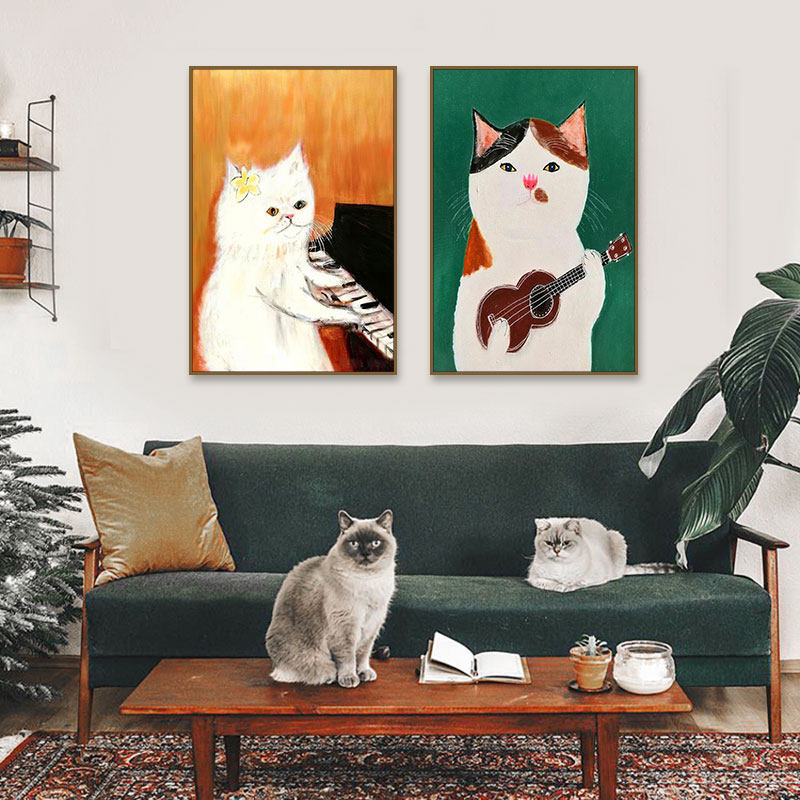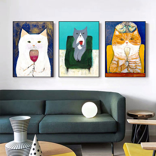 猫咪挂画客厅餐厅卧室卡通猫可爱装 创意油画壁画 饰画音乐室个性
