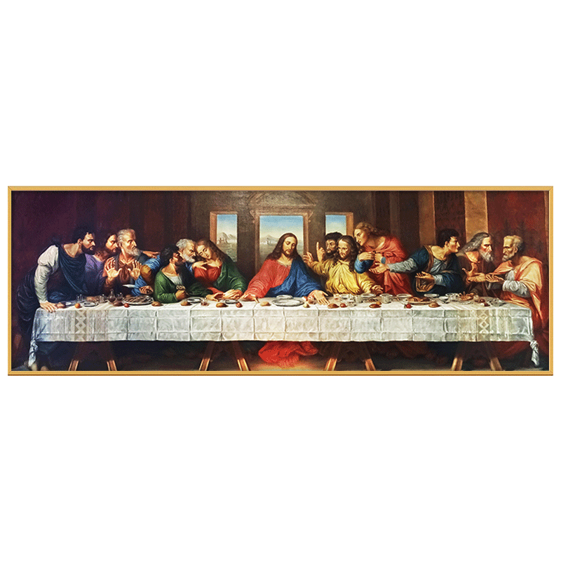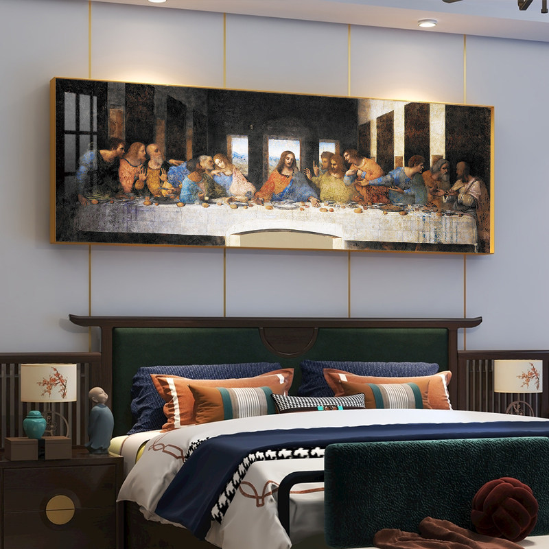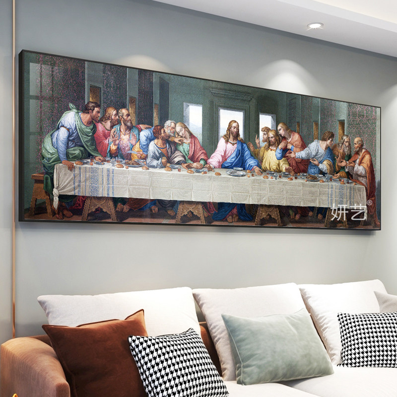 饰画达芬奇世界名画教堂油画沙发背景墙横版 最后 晚餐挂画客厅装