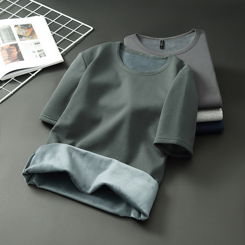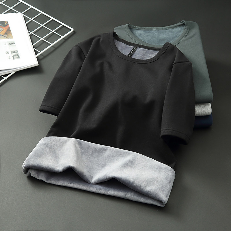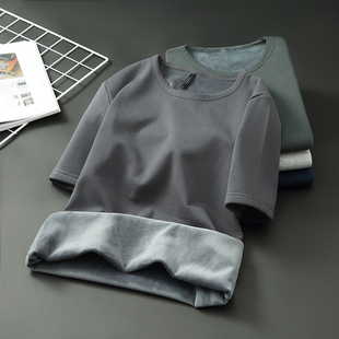 宽松加肥加大胖子男装 加绒t恤男大码 保暖加厚打底衫 冬季 胖子男士