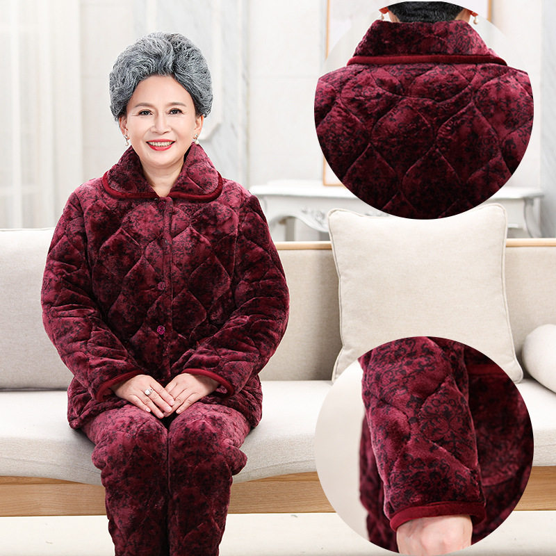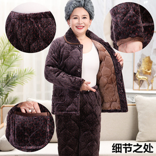 睡衣套装 珊瑚绒三层夹棉加厚家居服女士大码 2025新款 睡袍女秋冬季