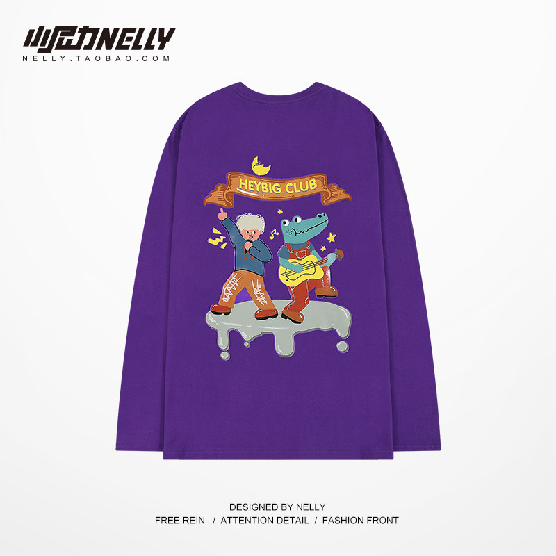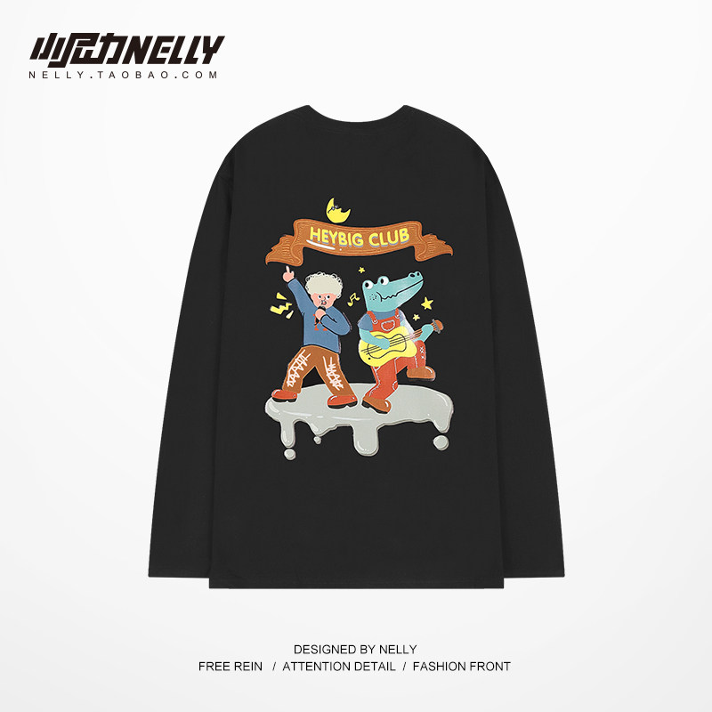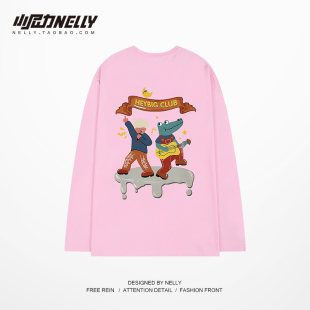小尼力ins原创设计长袖 上衣 T恤男女宽松古着感女生白色T恤打底衫