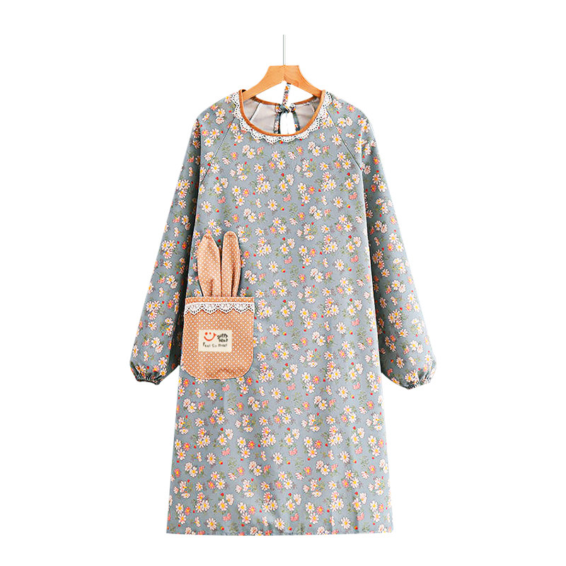 美甲花店工作服 韩版 防泼水公主裙围裙家用厨房做饭长袖 罩衣女时尚