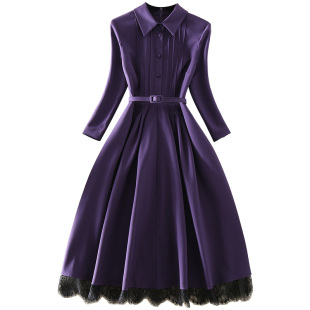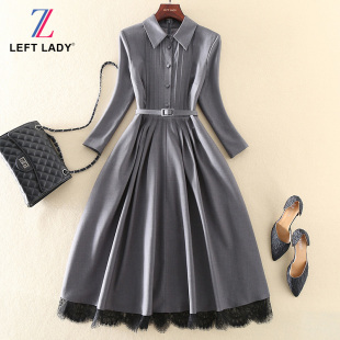 长袖 清仓新款 显瘦A字裙中长款 修身 蕾丝连衣裙子 气质优雅礼服女装