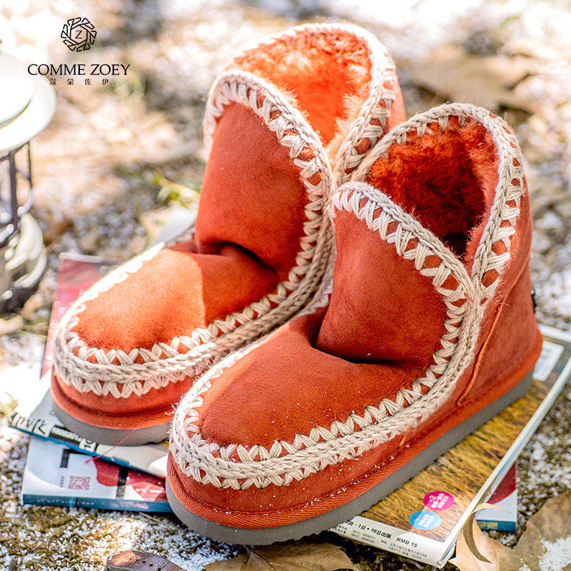 高级小众设计本命色爱斯基摩18CM羊皮毛一体氛围感雪地靴女