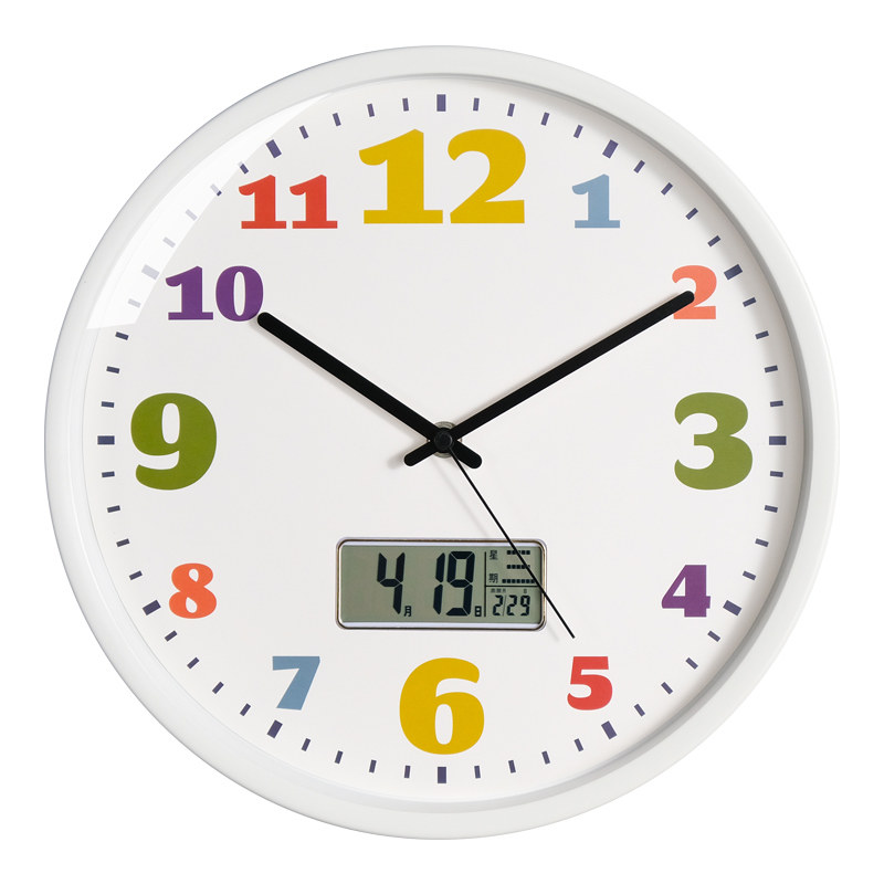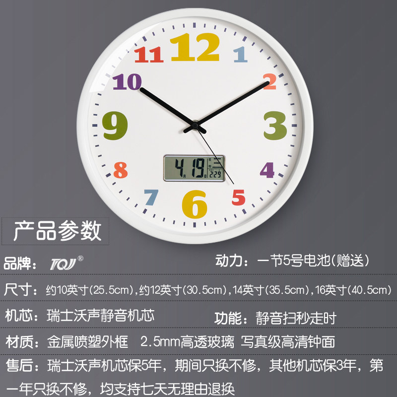 教室静音挂钟万年日历温湿度学生时尚 时钟表挂墙儿童房卡通电波钟
