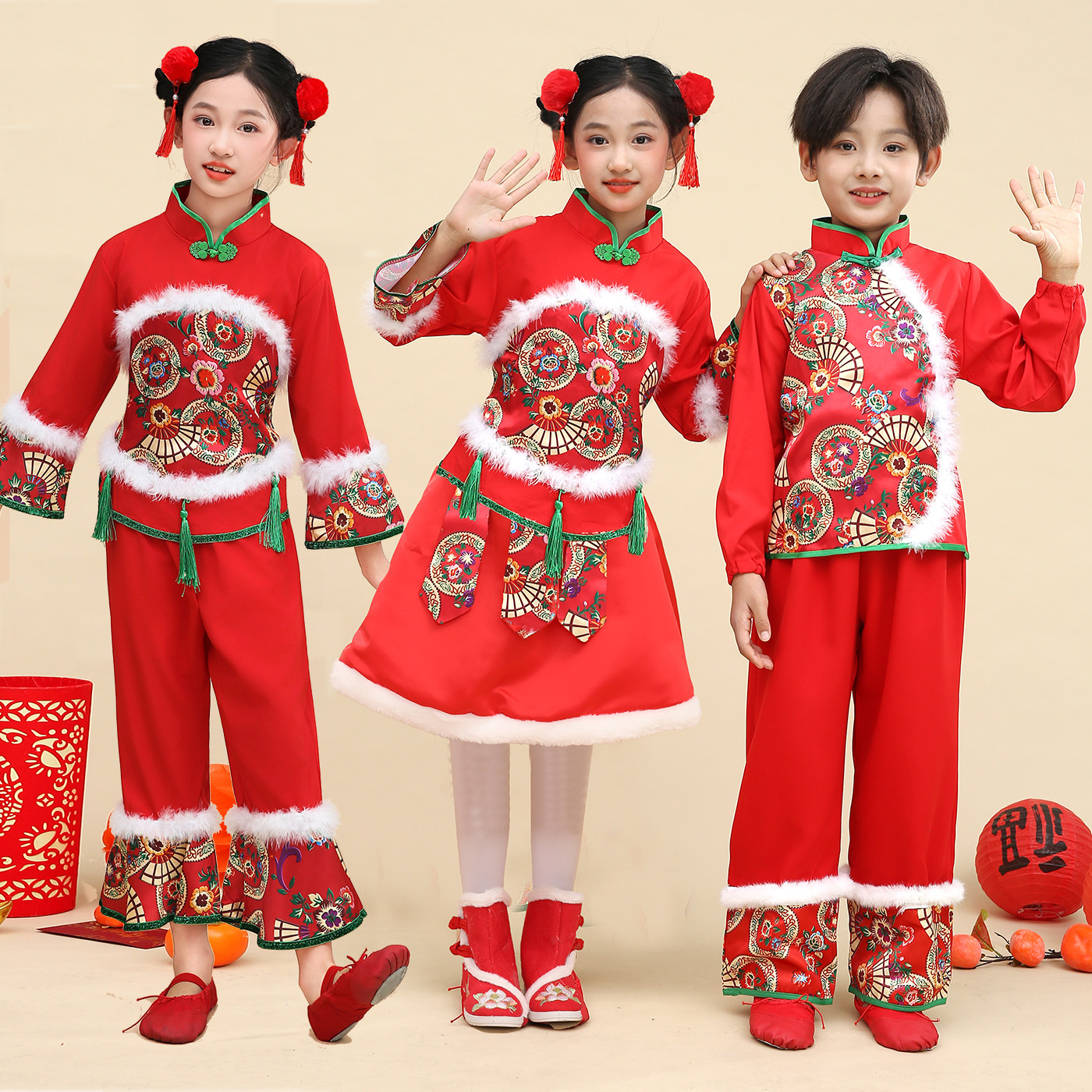 汉服男女童2025冬款 旦演出服宝宝拜年服新年过节喜庆服 加绒加厚元