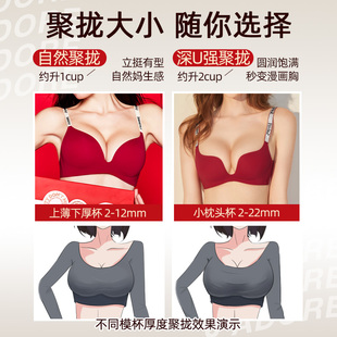 六只兔子内衣女小胸聚拢深v领无钢圈胸罩收副乳防下垂甜美风文胸