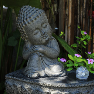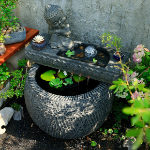 生态古法鱼缸边草缸乌龟缸熊猫钓鱼装 假山流水鱼池造景 饰摆件中式