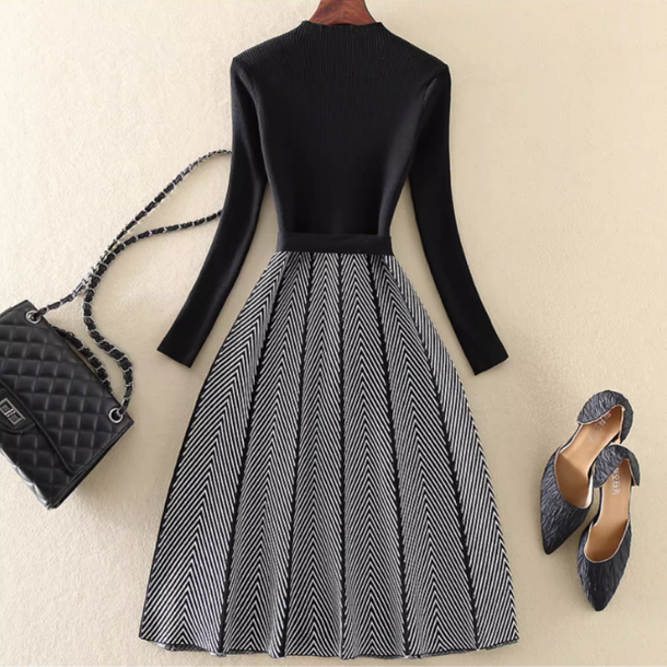 2025秋冬新款 显瘦A字裙内搭毛衣裙打底针织连衣裙子 气质优雅女装