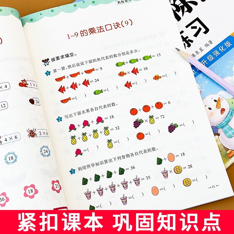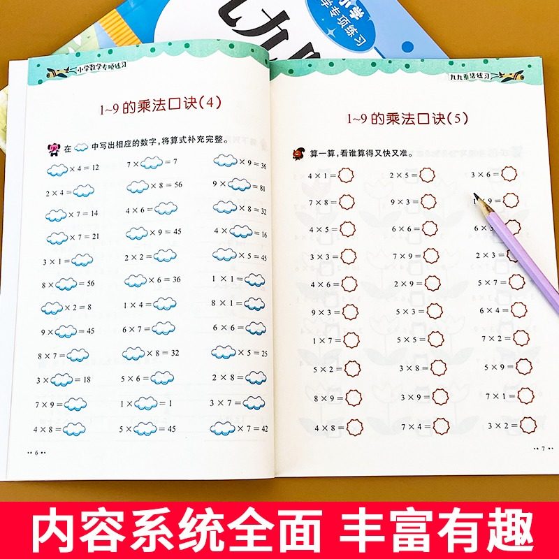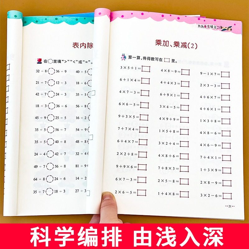 九九乘法除法练习题表内乘法专项训练册 上册下册99乘法口诀表一升二启蒙练习思维计算题 小学生一二年级数学口算题卡天天练人教版