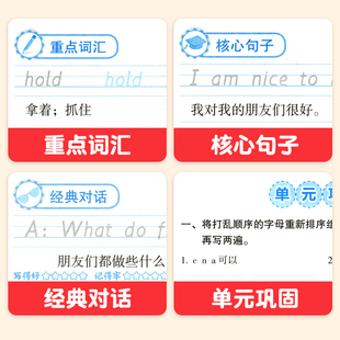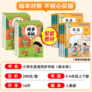衡水体英语字帖三年级起点四五六年级上册下册英语练字帖人教PEP版 课本同步英语大课堂同步练习小学生专用英语字帖字母单词练习本
