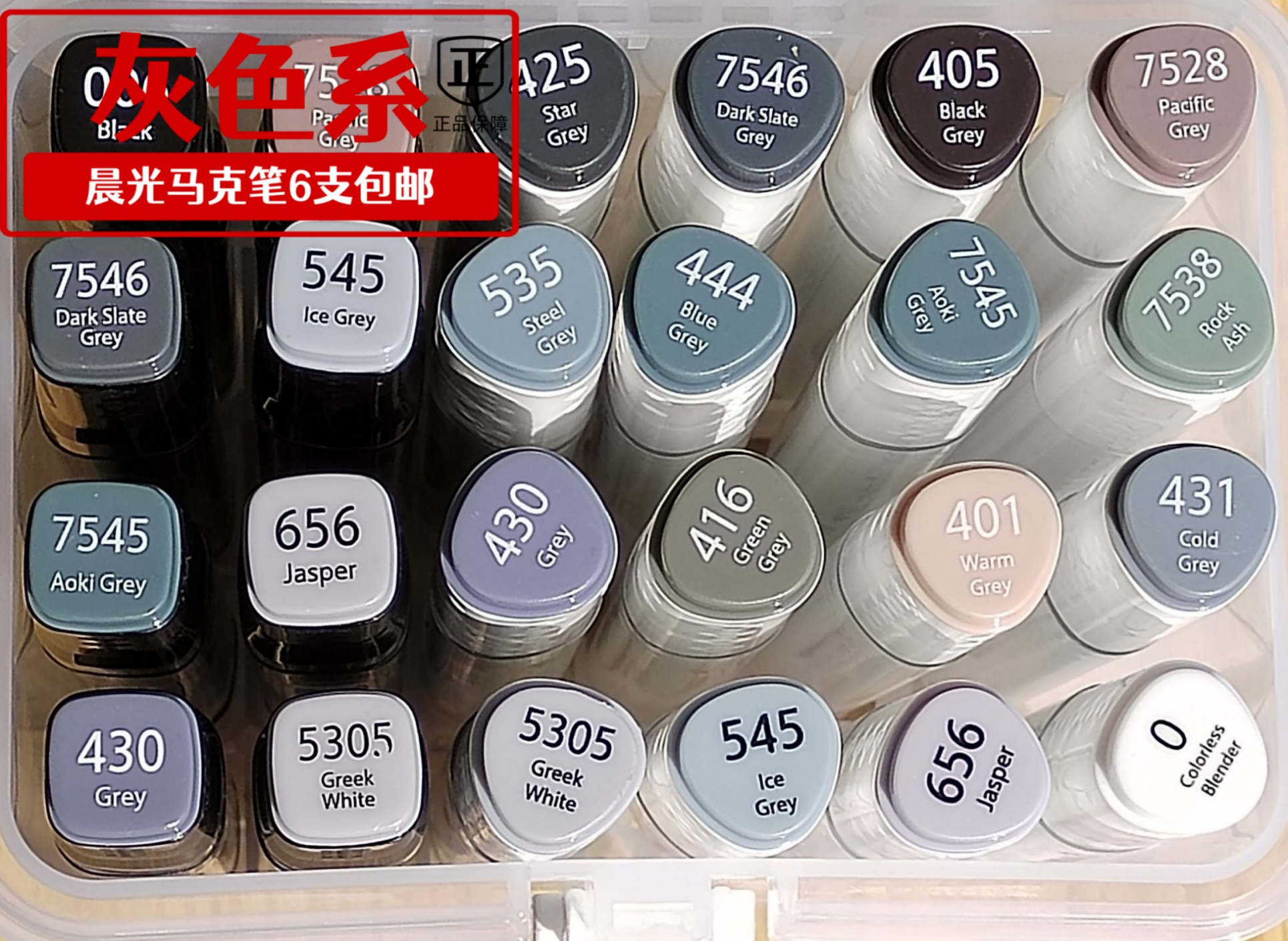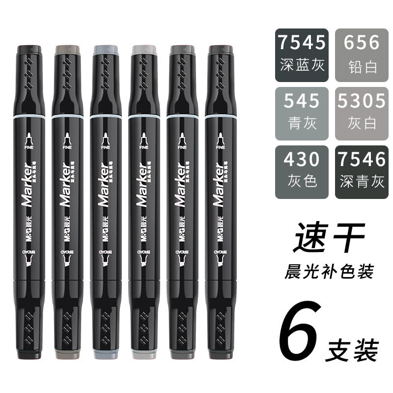 晨光油性双头马克笔灰色系自选430灰色5305灰白006黑色545铅白656建筑设计用535三角方笔杆美术文具用品