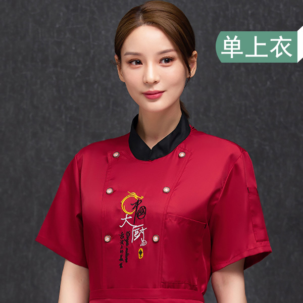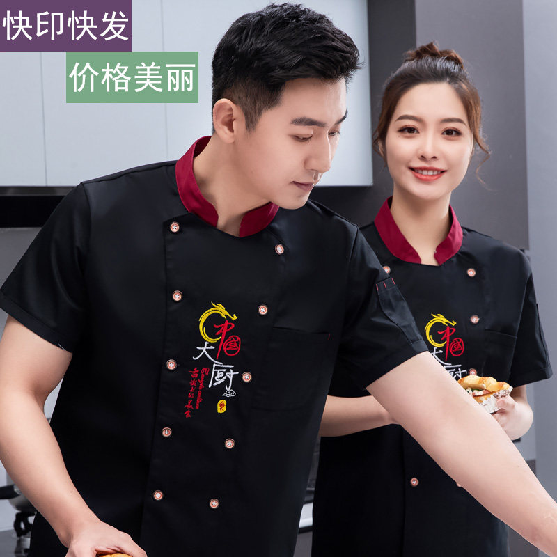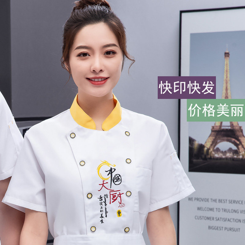 男女工作服烧烤饭店餐厅学校食堂厨房印绣logo 厨师服短袖 中式 夏季
