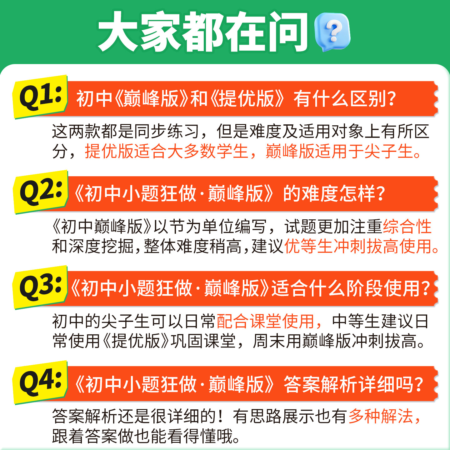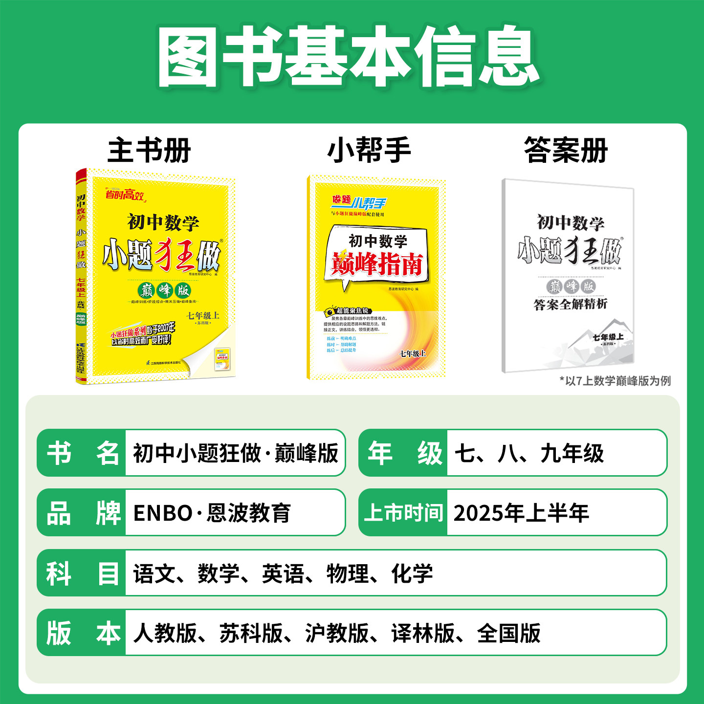 上下册 初中巅峰版 恩波教育七八九年级上下册语文数学英语物理化学初一二三年级同步巅峰尖子生训练送草稿本 小题狂做 2026春新版