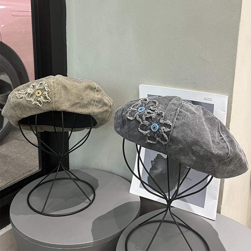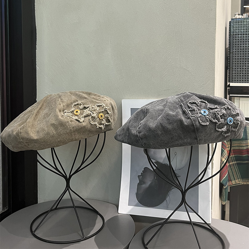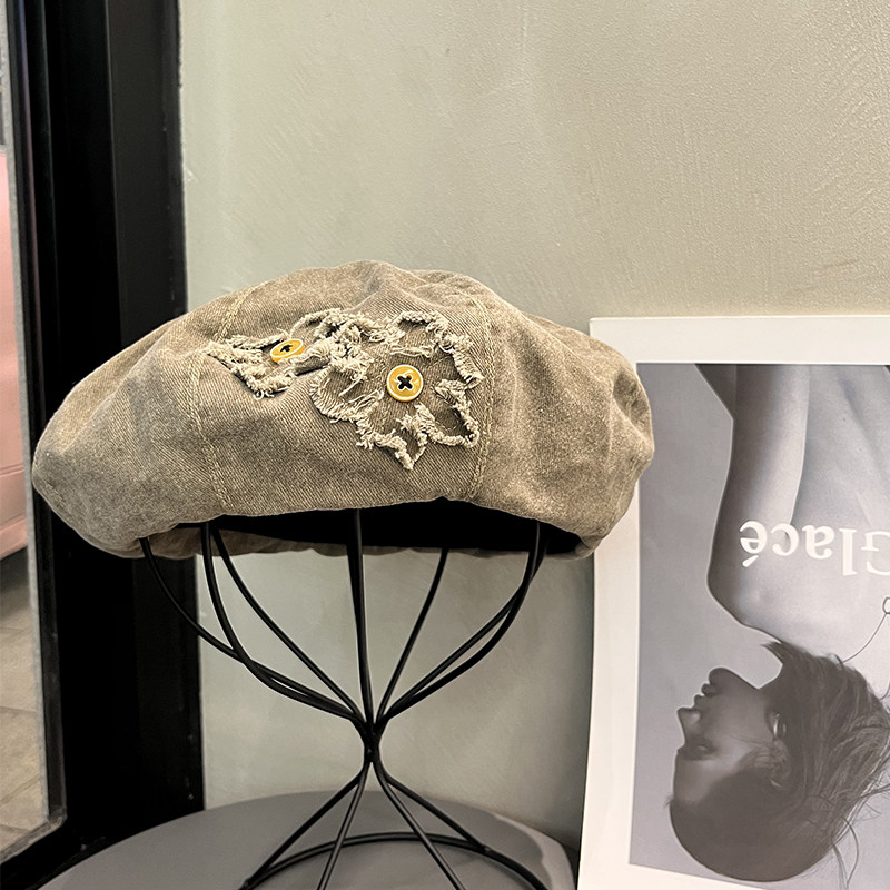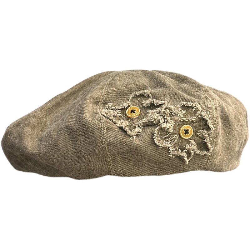 美拉德 日系复古棕色纽扣灯芯绒皮檐八角帽子女秋冬毛呢贝雷帽潮