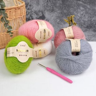 仿水貂绒皮草线粗毛线团长毛绒珊瑚绒兔毛裘皮绒围巾手工编织diy
