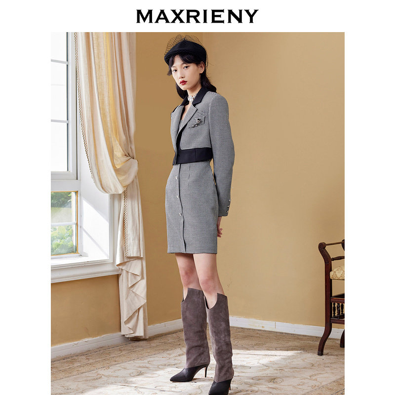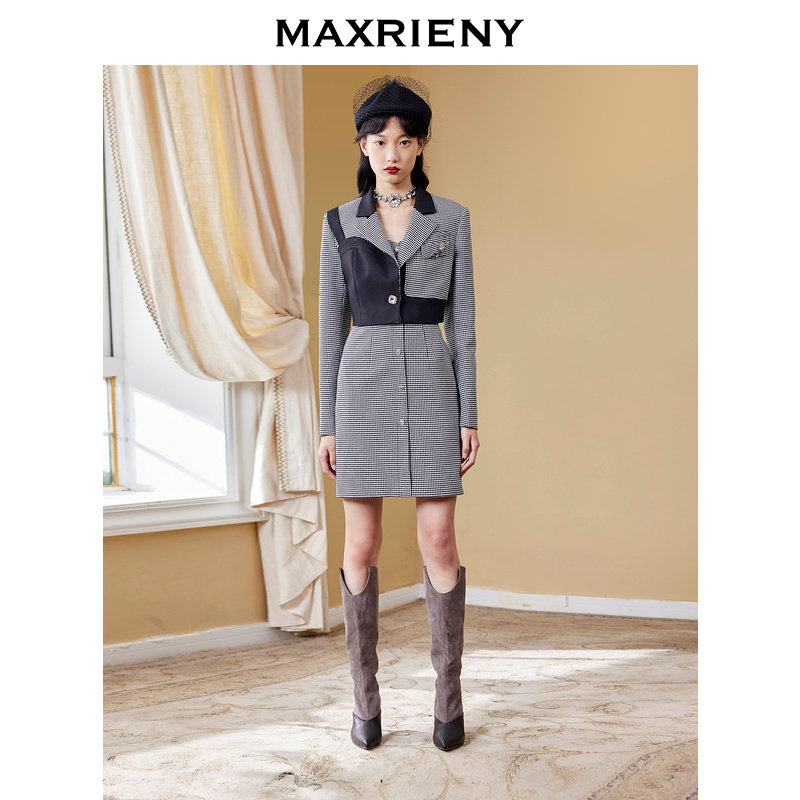 裙秋季 格纹西装 MAXRIENY大女主套装 连衣裙 奥莱