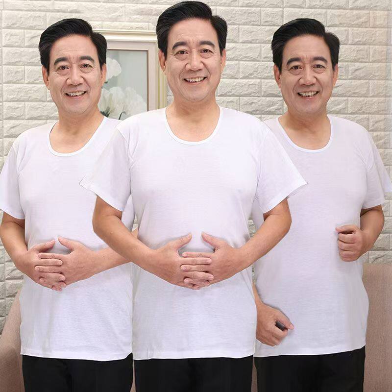 T恤衫 圆领短袖 白背心中老年人纯棉汗衫 宽松薄半袖 夏季 老头衫 男士