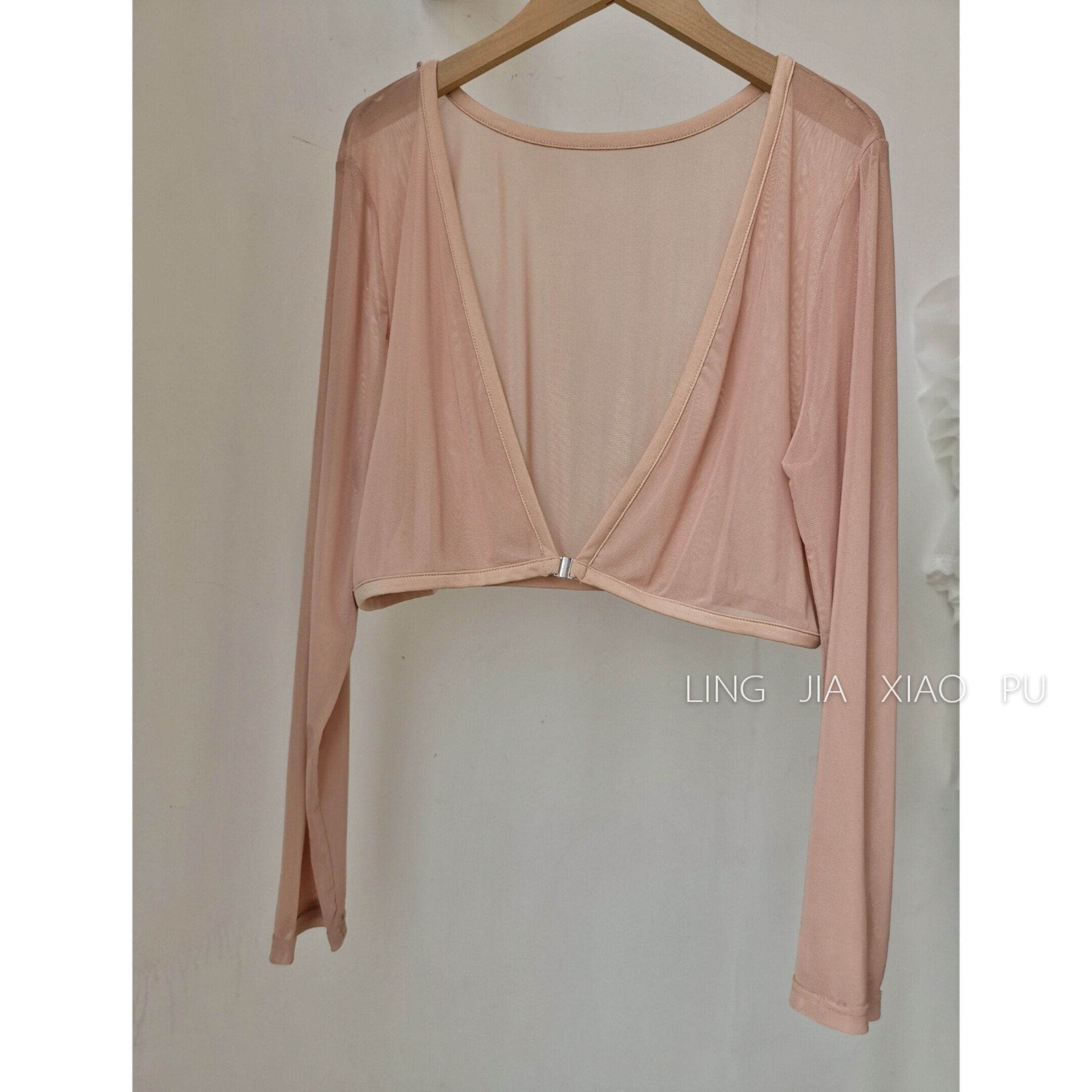 外套0.080kg两件 晚晚风纯色简约弹力网纱短开衫 清仓 包邮 聆家