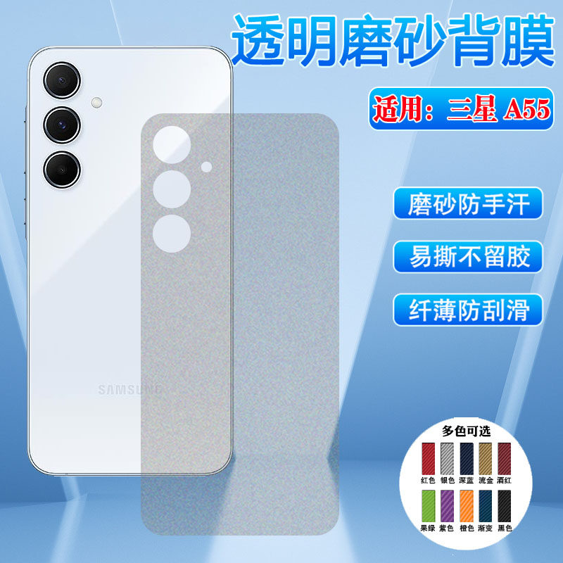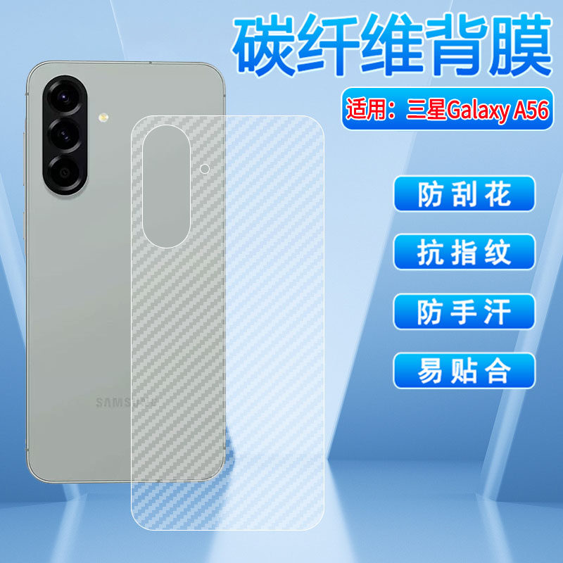 适用三星GalaxyA56磨砂后膜a55耐磨碳纤维背膜galaxyA54防刮保护贴膜a53半透明A52防摔后盖软膜a51防指纹手汗