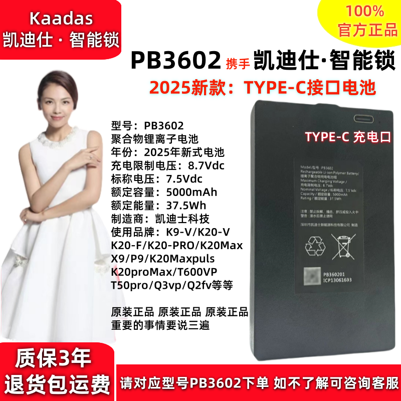 PB3601智能锁电池PB3602凯迪仕电池防盗门飞利浦萤石指纹锁锂电池