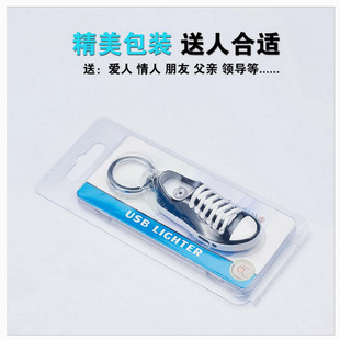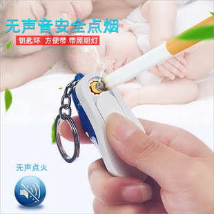 钥匙挂件扣汽车男士 金属防风打火机USB充电点烟器带照明灯创意热
