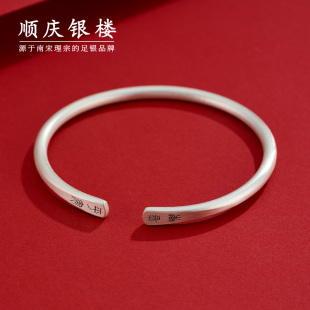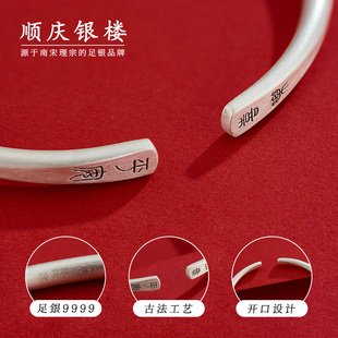 顺庆银楼S9999纯银手镯女古法喜乐平安足银新中式 手饰送女友礼物