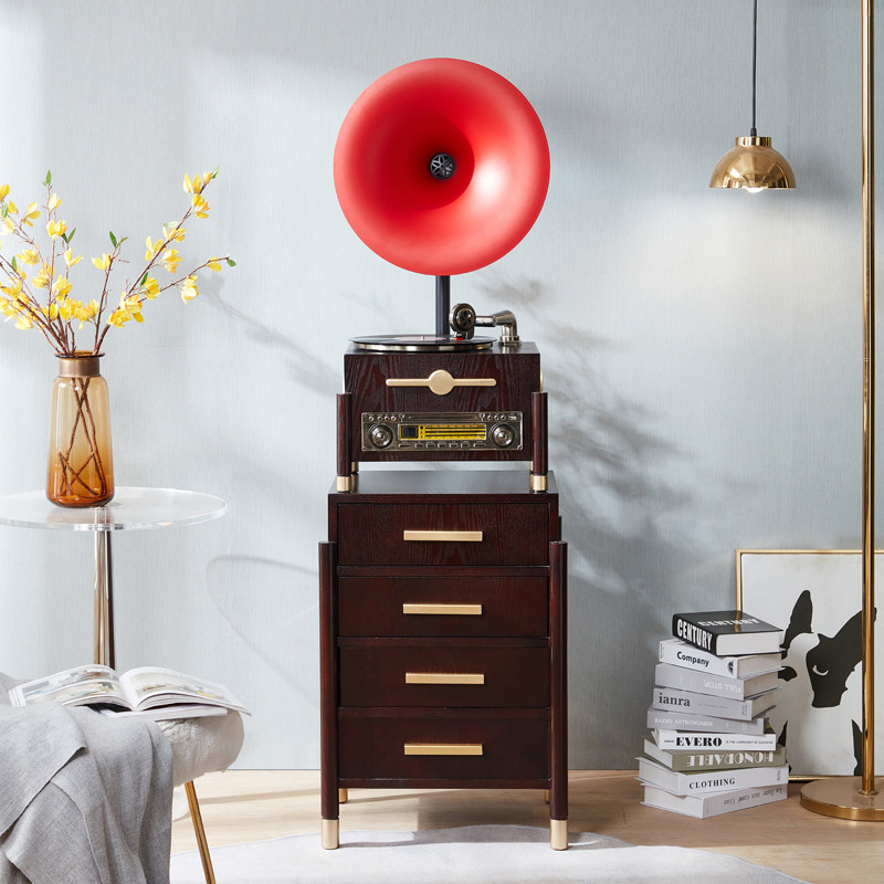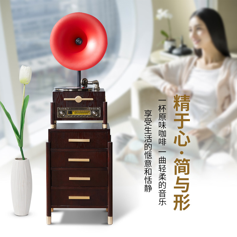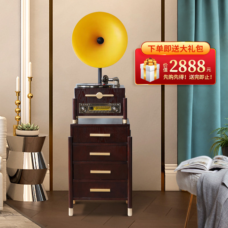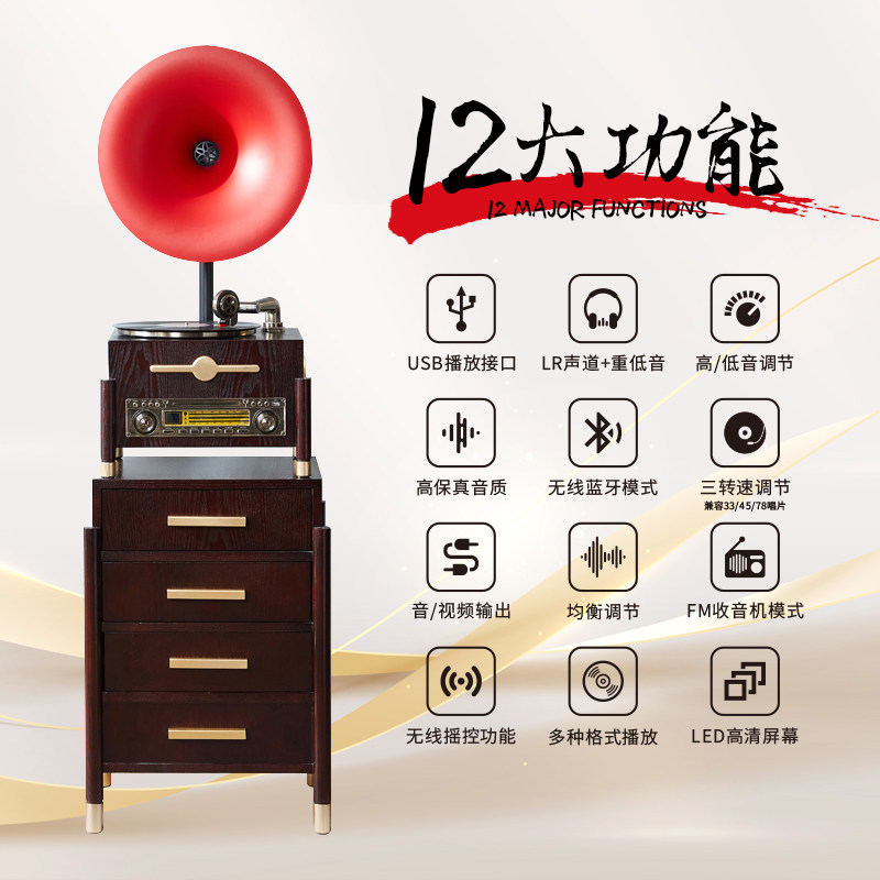 客厅电唱机仿古大喇叭音响 黑胶LP留声机片机中美式 老式 复古台式