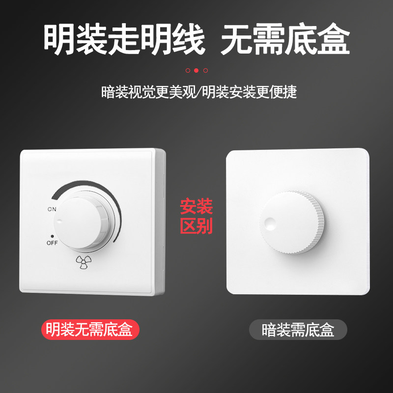 大功率电扇调速开关电风扇调速器暗装 面板 吊扇无极变速旋钮明装