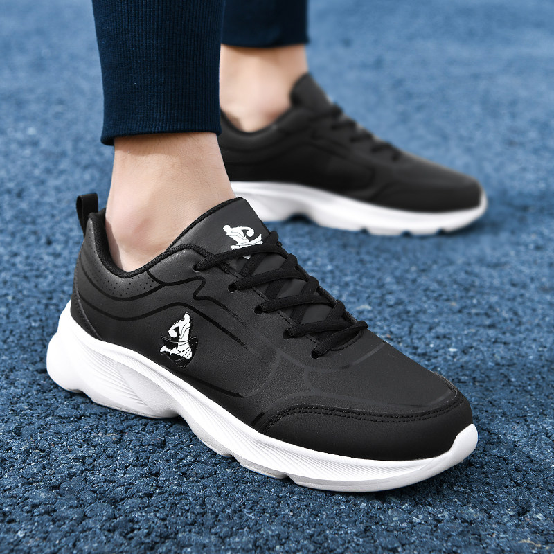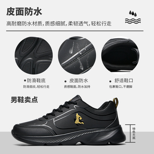 男式 休闲运动鞋 春秋皮面男士 减震爸爸新款 鞋 防水软底男鞋 子男款