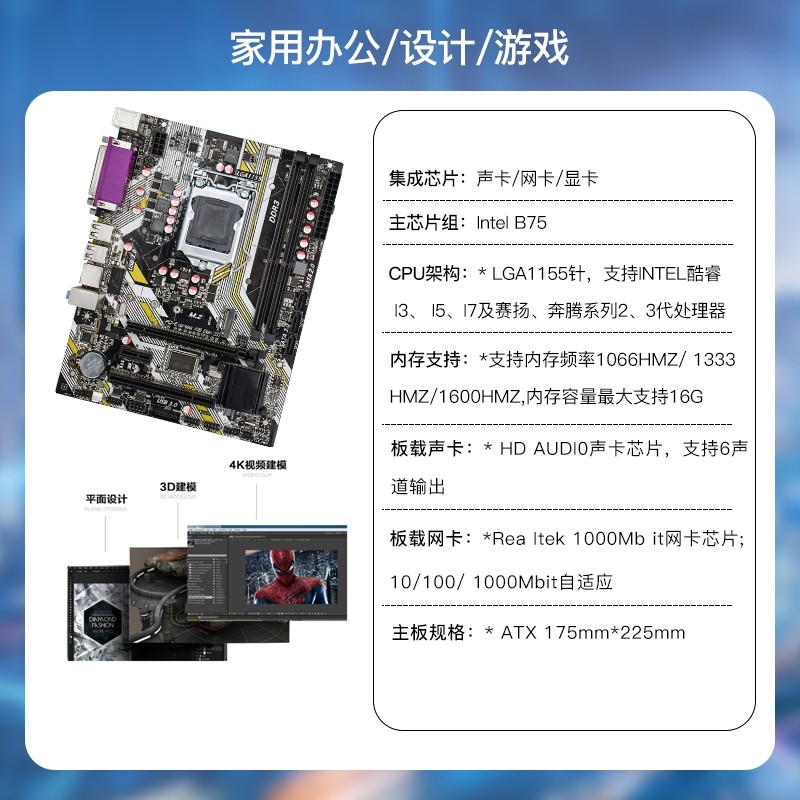 cpu 3代 全新B75 1155工控电脑主板打印口PCI槽打标机雕刻机支持2