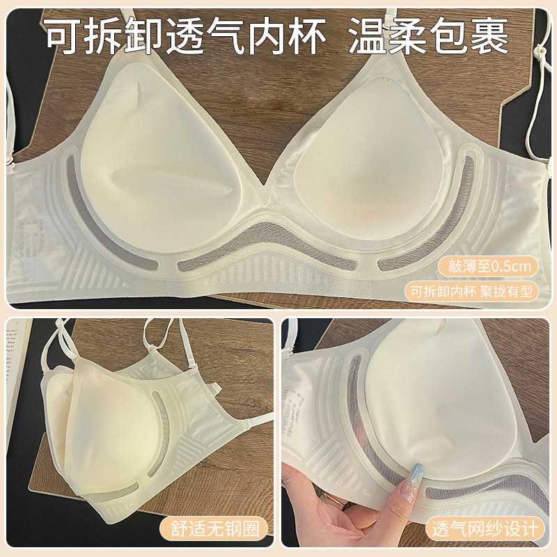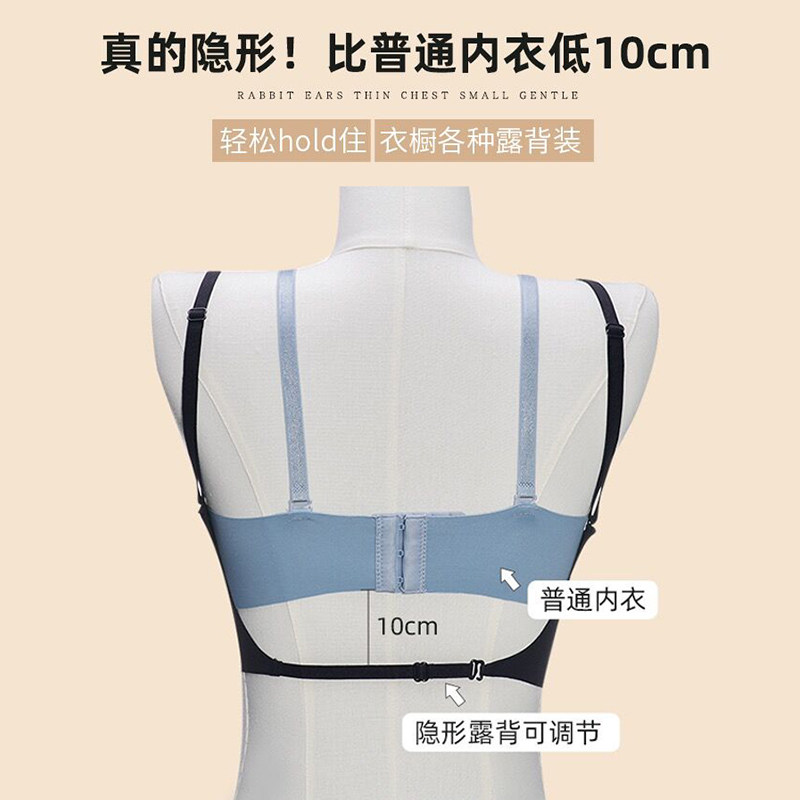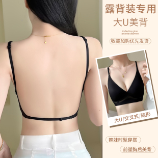 美背内衣女小胸聚拢薄款 U型露背文胸罩 一体吊带背心隐形无痕夏季