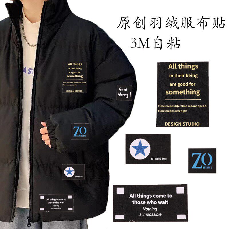 自粘羽绒服补丁贴布贴破洞修补贴潮牌字母徽章印花DIY皮衣徽章贴