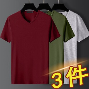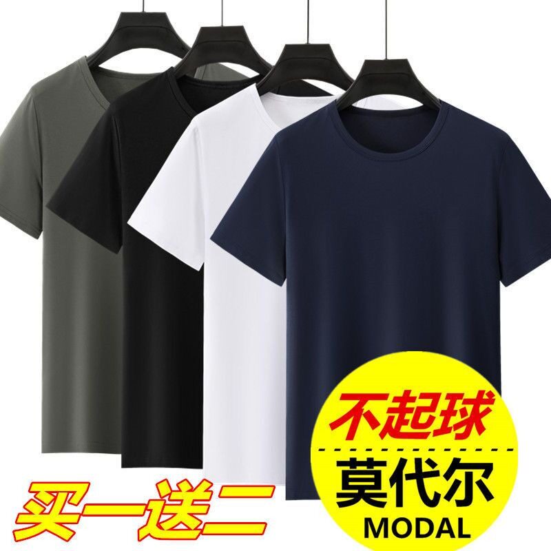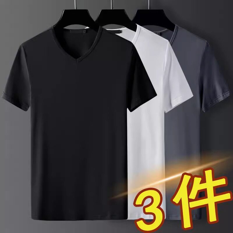 莫代尔冰丝短袖 半袖 t恤男2022夏季 打底衫 体恤潮 纯白色大码 3件