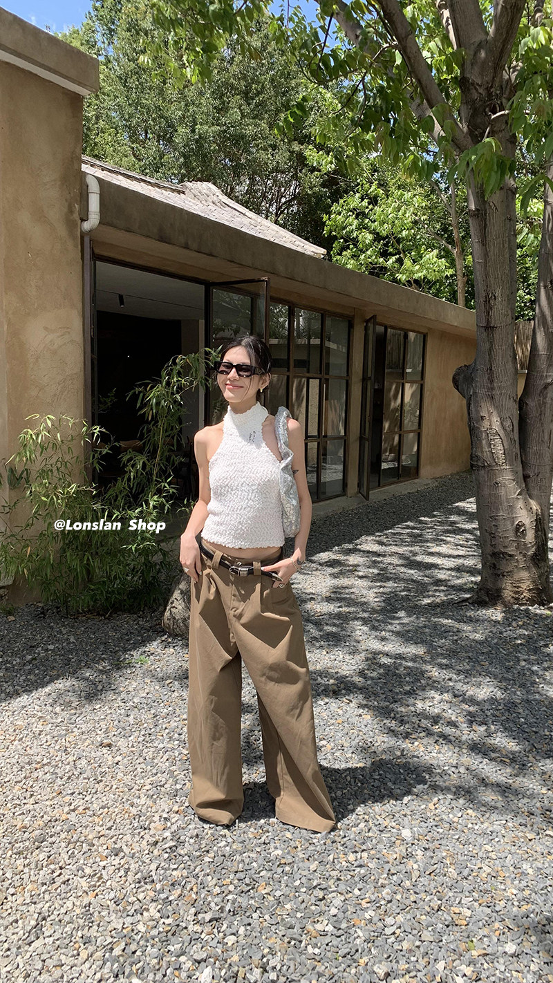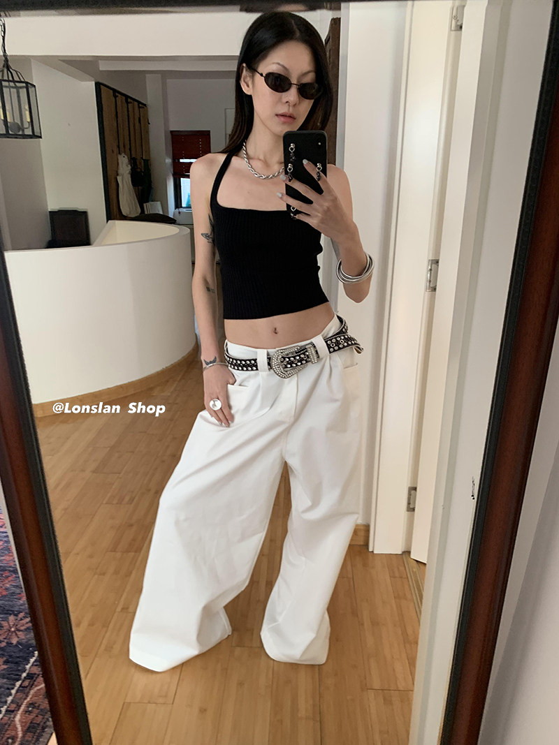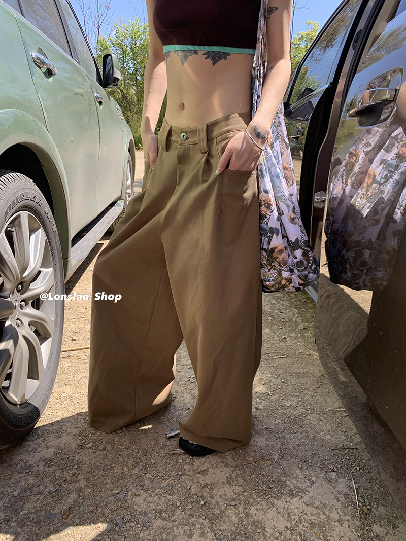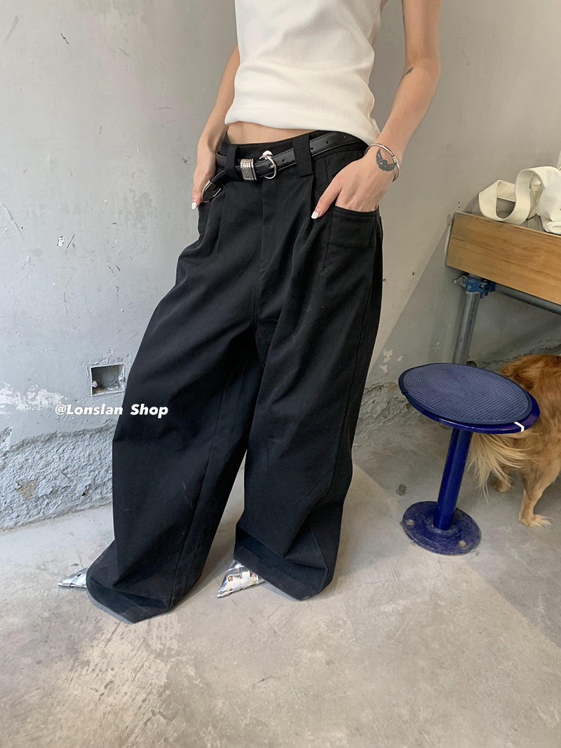 复古休闲显瘦质感直筒宽松插袋拖地阔腿裤 LONSLAN 韩版