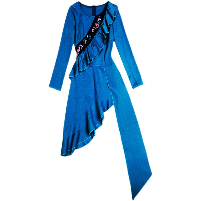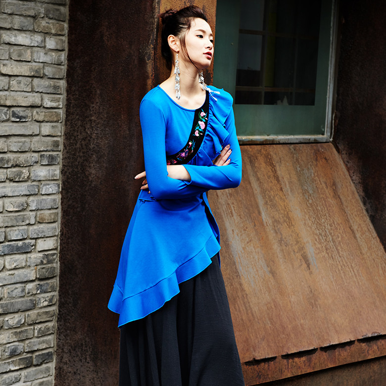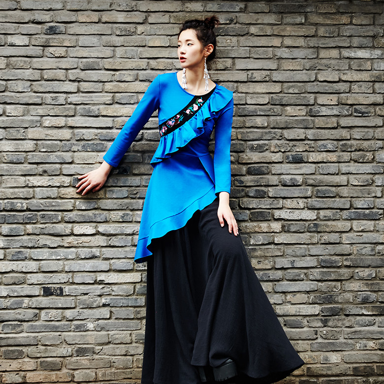 丹书铁券 松石蓝绣花不规则罗马布上衣 售完即止 原创 此岸歌声